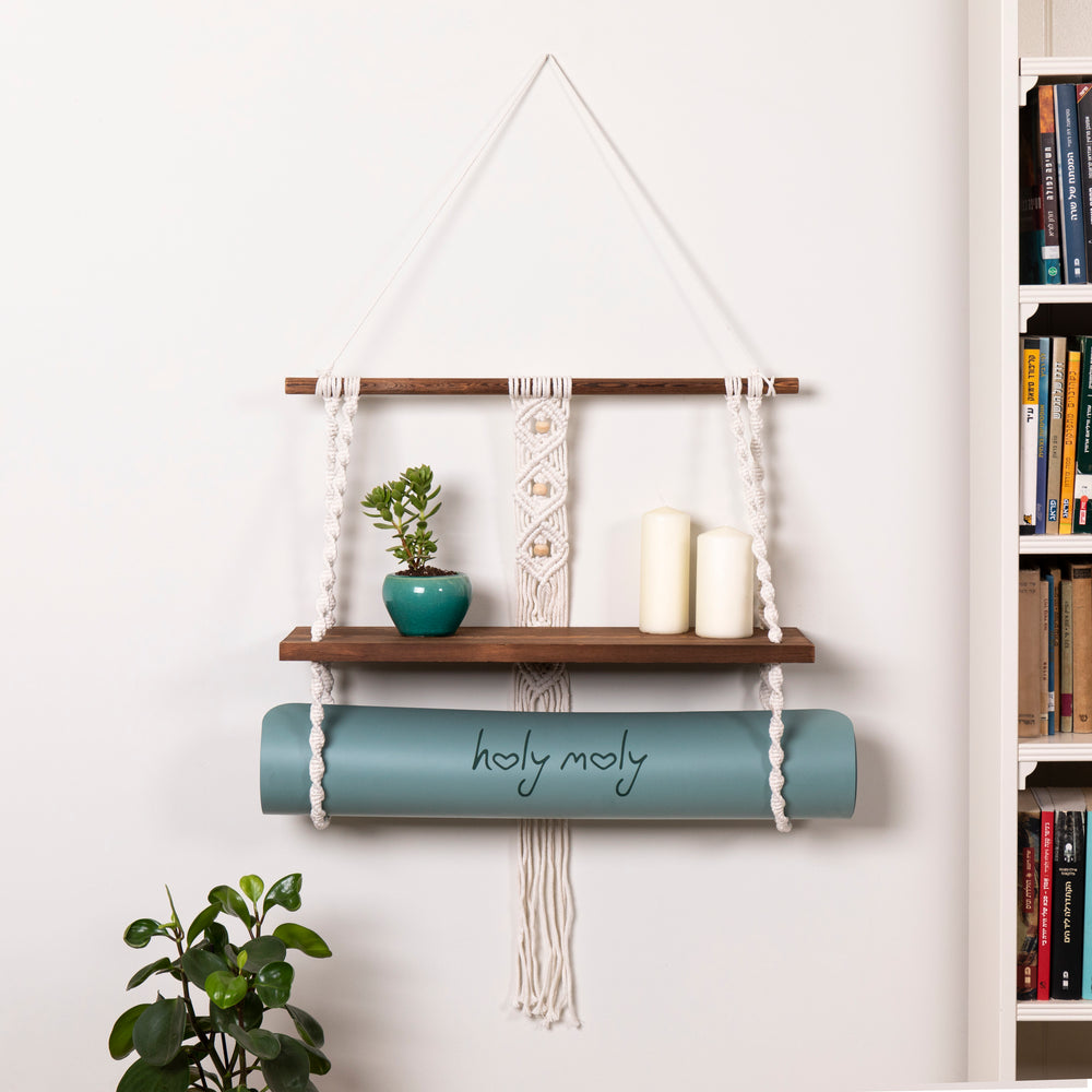 מדף יוגה איכותי ומעוצב להחזקת מזרן - עבודת יד עם עיטורי מקרמה